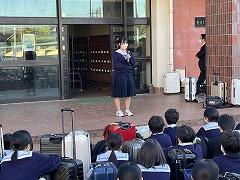 3年生は、この旅行を成功させるために、昨年度の終わりから実行委員会を立ち上げて、いろいろ取組を進めてきました。出発式では、3年生全員で決めた「5つの誓い」を確認しました。ぜひ、「5つの誓い」を守り、高松とは違う場所で、多くのものを見たり、感じたりして、学びを積み上げてください。これからの3日間が、中学校での貴重な思い出となることを祈っています。