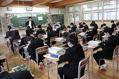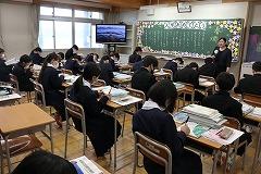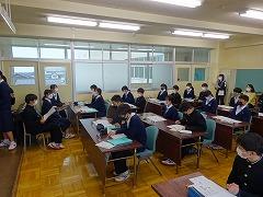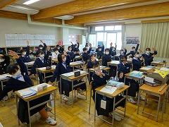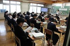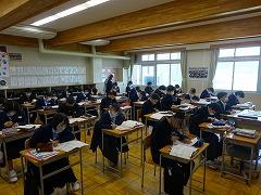 5限の授業のようすです。3年生は英語と数学の授業です。今年度、本校では2・3年生の数学・英語の授業において習熟度別少人数授業を実施しています。少人数で授業を行うことで、1人あたりの表現する時間が増え、個に応じた指導をめざしています。