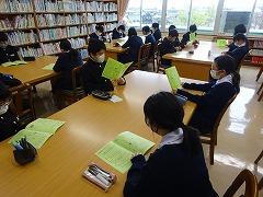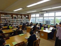 昨日までに、全学級が学校図書館に入り、読書の効果や図書館の利用等について、澤野学校司書よりお話しがありました。写真は1年3組のようすです。特に、1年生は図書の貸出、返却の手順も実際に体験しました。