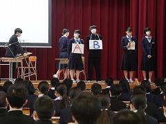 = 全校集会、生徒会役員等認証式 =