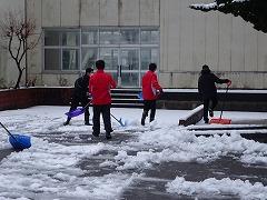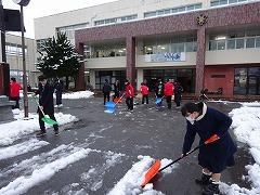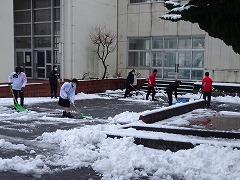 昨日からの湿って重くなった雪を、今日の当番2年3組が除雪してくれました。7時45分頃から約15分間、頑張ってくれました。おかげで給食のトラックも無事に入ることができます。この冬はこれまで、1年2組、3組、2年1組、3組が除雪をしてくれました。ありがとうございました。