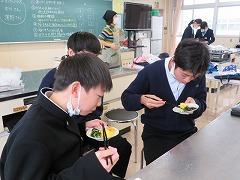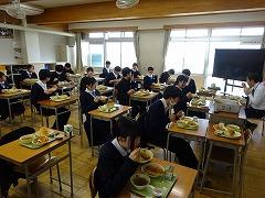 写真は3年生の給食のようすです。カレンダーを見ると、卒業まで給食はあと13回になりました。少しずつ、卒業の日が近づいています。