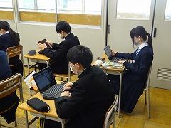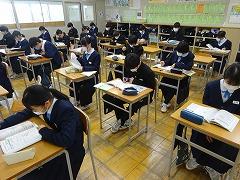 1、2年生は、今年度最後の定期テスト「3学期期末テスト」が実施されました。写真はテスト開始前の直前学習のようすです。本校では、朝礼の後、テスト開始まで15分間の学習時間を設けています。生徒が必要に応じて、苦手教科のワークを見直したり、自作の単語カードを使って語句の確認をしたり、クロムブックを使ってドリル形式の問題を解いたりしていました。今年度最後のテストです。テストを通して、確実に身についていること、分からなかったことの確認をして、現在の学年での学習を修めてください。