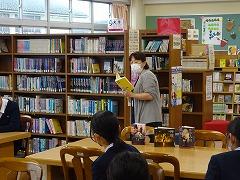 「メロスは激怒した。必ず、かの邪知暴虐の王を除かなければならぬと決意した。」2年生国語科で学習した「走れメロス」の冒頭の文章です。今日の授業では、図書館で惹きつけらる書き出しのある小説を探しました。授業の最初に、学校図書館司書の澤野さんが、魅力のある書き出しで始まる小説を朗読し、イメージを深めました。続いて「読みたくなる部門」と情景が鮮明に浮かんでくるような「テクニカル部門」の2つに分けて、小説を探しました。