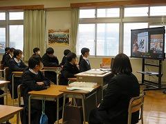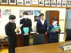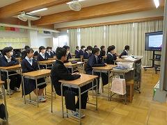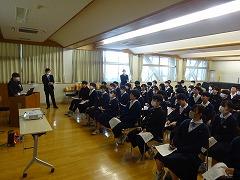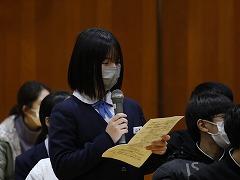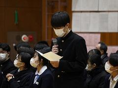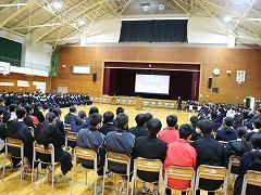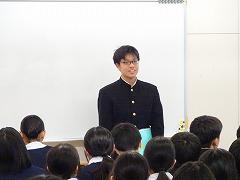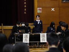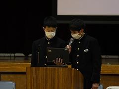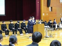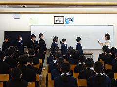 後半は、本校の伝統3項目である「あいさつ」をテーマに、各クラス討議の発表がありました。討議されたテーマは「あいさつ」について、①クラスの現状、②目指すあいさつ、③あいさつの取組の3点です。各クラスで行われる「あいさつ」の取組により、3学期はさらに、気持ちのよい「あいさつ」が交わせることを楽しみにしています。
