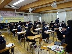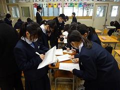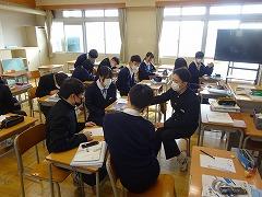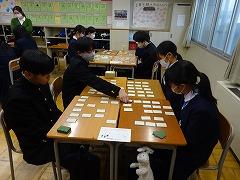5・6限の、かるた大会はクラス対抗で実施しました。瀧本先生の朗々とした詠みが、校内に響きました。各チームごとで担当する取り札を決めるなど作戦を立てて臨んでいました。得意の札が読まれると、大きな歓声があがりました。とても楽しく、3学期がスタートできたように思います。