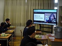 5限は、3年生を対象に食育講座が行われました(写真下段)。講師は河北台中学校の 細山 紀子 栄養教諭です。本校では、全生徒が各学年の発達段階に応じたテーマで話を聞く機会を設けています。今日の3年生のテーマは「受験に勝つ食事」です。受験生の食生活のポイントとして①早寝・早起きで、朝型の生活へチェンジ、②朝食を必ず食べ、栄養のバランスもよくする、③脳力・体力・気力をつけ、受験太りにも注意する、④かぜや感染症に注意して免疫力を高める、の4つを挙げられ、質のよい睡眠、栄養素・食べ物の働き、免疫力を高める方法について教えていただきました。「旅立ちの春」に向けて、がんばれ3年生!!