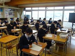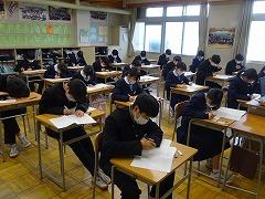 3学期がスタートして10日あまり、学校は通常通りの活動を行っています。1月11日(木)に予定していたテストを地震の影響もあり延期し、学校生活が落ち着いてきたこの日に実施しました。18日(木)に3科目、19日(金)に2科目と2日間に分けて実施にしたため、3年生はちょうど3月の公立高校入試と同じ時間割でのテストとなりました。どの学年も、これまでの学びの定着を図る大事なテストですが、特に3年生は私立高入試まで12日と迫っています。「あわてず、あせらず、あきらめず」に学習を続けて、最初の関門を迎えてください。