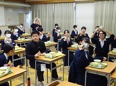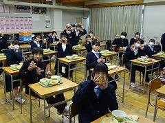 昨年に続き、株式会社「米心石川」様より、受験生へ応援おにぎりが提供されました。今年は「点を取りにいく」にかけて、「とり天おにぎり」が、3年生に配付されました。いつもの美味しい給食が、さらに、温かい気持にさせてくれました。私立高校入試まで、あと10日を切りました。いろいろな方々の応援があることを知って、試験に臨んでください。