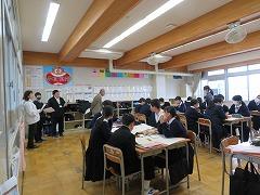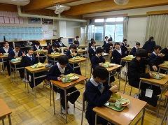 「第2回学校運営協議会」が開かれました。5月のこの欄にも書きましたが、この会は「高松中学校の応援団(中学生のことをいつも気にかけてくださる保護者の皆様、地域にお住まいの方々)と一緒に、より良い学校をつくっていきましょう」というもので、前期の学校アンケートから見える学校のようすについて、校長が説明しました。今日は、さらに生徒の皆さんのようすを見ていただきたい思いから、3限目に授業参観、PTA給食試食会にも参加していただきました。(写真上段)