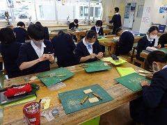 2年生の技術・家庭科の授業の様子を紹介します。両教科とも製作実習をしていました。技術科では、「鋳造」でキーホルダーの作成をしていました。「鋳造」とは、金属を溶かして型に流し込み、成形し製作する方法です。マンホールのふたやお寺の鐘などもこの製法で作られています。ちょうど、金属を流し込む作業をしている生徒もいました。家庭科では手縫いとミシンを使って「エコバッグ」を作成していました。真剣な表情で、糸を通したり、ミシンや生地に向き合ってたりしていました。どちらも完成が楽しみです。実際に手を動かし製作し、モノづくりの苦労を知ると、身の回りのモノを大切に扱えますね。