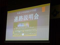 午後より、3年生とその保護者を対象に「進路説明会」が行われました。来年度の入学試験の概要が明らかになった、例年この時期に開催しています。本日もご多用の中、説明会に多数お集まりいただき、ありがとうございました。生徒にとっては、未知の体験で大きさは違いますが、みんな不安な気持ちを持って過ごしていると思います。進路選択については、正しい情報を得て、お子様と一緒に決めていただきたいと思います。不明な点がありましたら、早めに学級担任、進路担当に相談してください。本日、都合等で出席できなかった保護者の方々には、お子様を通じて資料を配付します。