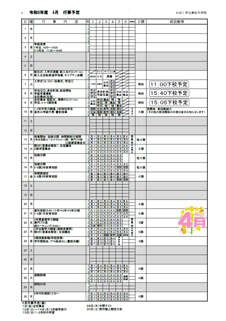 令和8年度 行事予定