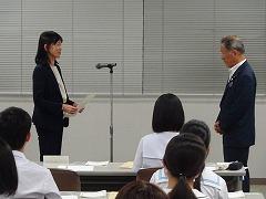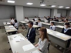 結団式では、油野 和一郎 市長より「期待と不安もあるだろうが、ドイツの文化・自然、ホストファミリーの温かさに触れ、今後の成長の糧にしてほしい」と激励がありました。激励に応えて本校から参加する 寺内 智生 さん(3の3)は「経験したことを伝えたい」、川端 紗奈 さん(2の2)は「たくさんの経験をして将来に生かす」、赤﨑 心優菜 さん(2の1)は「周りを見て行動する」と抱負を述べました。