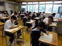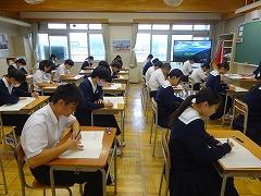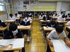 3年生は、今年度第1回目の河北郡市統一テストが行われました。統一テストは、11月、12月、1月と年4回、河北郡市6中学校で同一日に実施され、進路選択の資料となるものです。中学校生活も残り半年、進路決定まであと半年となったこの時期の「3年生のあたりまえは勉強」です。家庭では、ぜひ学習を始める時間を固定することを心がけてください。