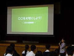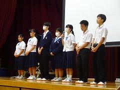 なお、来週12日(土)には、ソフトボール部が県選抜大会、野球部、ソフトテニス部、陸上競技部、卓球がそれぞれ加賀地区新人大会に挑みます。それぞれの大会を、2学期のテーマ「最高の自分を見つけよう」につながる「チャンス」と捉えて「チャレンジ」する姿を見せてください。頑張れ、高中生!!