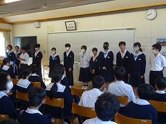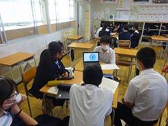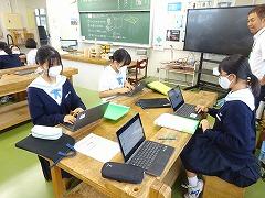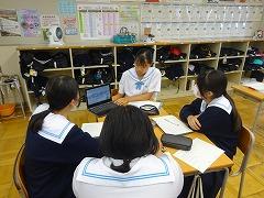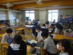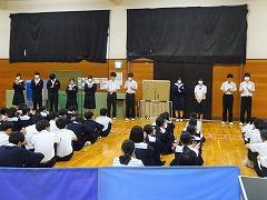 6限目は全校が「学級活動」の時間です。2、3年生は学年集会が開かれ、後期学級役員の皆さんが、学級役員になっての抱負と今後の活動への協力を呼びかけていました。1年生は「かほく市」についての探究活動に取り組んでいました。