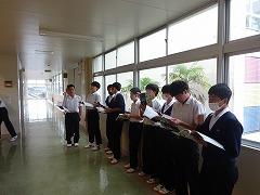 また、今日から帰HR後15分間の合唱練習が始まりました。11月1日(金)の文化祭で行われる合唱コンクールに向けて、各クラスから歌声が聞こえてきました。パートごとに分かれて練習したり、歌詞を大きく映して、思いを込めながら歌うなど、工夫して取り組んでいる姿が見られます。どのクラスも指揮者や伴奏者を中心に練習が進められています。