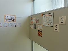 階段の踊り場に掲示されている 国語科の「言の葉タイム」です。(写真下段) 毎回の授業の最初に、2人ほどの生徒が自分が感じた素敵な言葉を紹介しています。偉人から、スポーツ選手、マンガのキャラクターの言葉で、多種多様の感動したり、納得したり、考えさせられる言葉が並んでいます。いくつか紹介します。