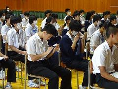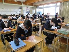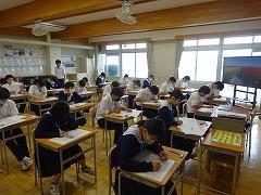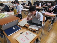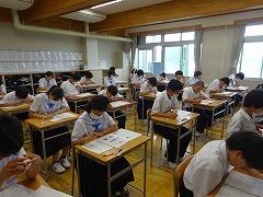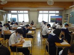 早いもので、1学期も3か月を過ぎ、今日は期末テストです。中間テストの時と同様に、テストの日は普段より登校も早く、学校で最後の追い込みにかけていた人もいたようです。1年生も2回目の定期テストとなり、テストに向かう要領もつかめてきたようでした。