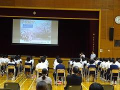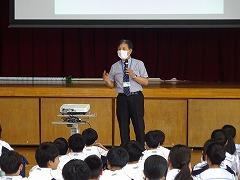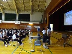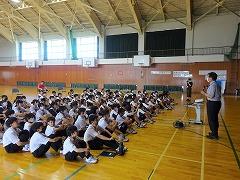 3年生を対象に「高校説明会」が行われました。県内の公立高校(普通科、実業科)、高等専門学校、私立高校より7校の先生方をお招きし、それぞれの学校の特色(進学・就職状況、学校行事、部活動など)、求めている生徒像について、お話をいただきました。さらに高校の先生方からは、3年生に向けて「学習習慣を身に付けてほしい」「毎日の学校生活をしっかりと過ごしてほしい」と進路選択に向けて、今すべきこともお話してくださいました。3年生も、しっかりメモを取り聞いていました。