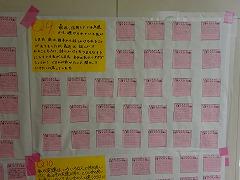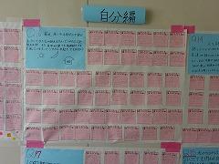 今月4日に仲間に相談したいことや、困ったことなどを無記名で記入しました。その寄せられた悩みは「勉強編」「部活動編」「人間関係編」「自分編」の4つのカテゴリー、18の質問に分類され、これらの悩みについて、18日に回答する時間を設けられ、その回答を保健体育委員会が、分かりやすく掲示物にまとめました。また、お昼の校内放送でも、毎日少しづつ紹介されています。