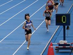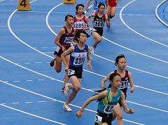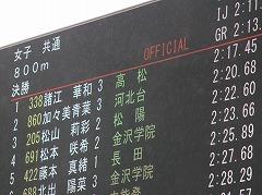 30日(日)は 諸江 華和 (3の1)さんが女子800m に出場し、見事、優勝し、8月に新潟県で開催される北信越大会の出場を決めました。午前の予選は、強い雨風の中でしたが、4組1位で通過し決勝に進みました。決勝は予選よりも雨は弱まったものの、十分ではないコンディションの中、全国大会標準記録に1秒弱まで迫る会心のレースでした。