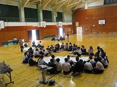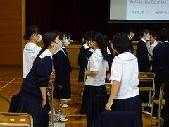 全校集会では、校長先生より、中学校に入学して、新しい学年に進級して2ヶ月、新しい環境で少し無理をして頑張っていたり、友達とも互いに地の部分が出てきて関係に悩んだり、疲れたりする頃かと思う。普段と違う状態と感じたときは、心を穏やかにして「兆し」「サイン」を感じとって行動してほしい。」との思いから、6月のテーマは「『兆し』を感じとろう」と話がありました。