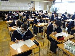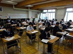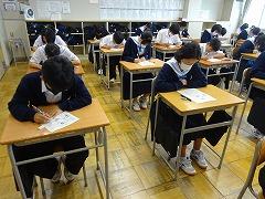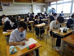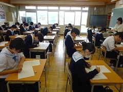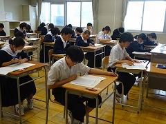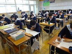 5月の国語テストに続き、今日は社会テストを行いました。昨年度までの英語、国語の2教科から5教科に拡大し、部活動休養日の翌日に実施します。全教科とも全員が満点をめざせる出題内容で、学期ごとに継続した頑張りが見られた生徒を全校集会等で表彰します。今日は、どの学年もしっかりテストに向き合っていました。なお、来週13日(木)には数学テストが行われます。