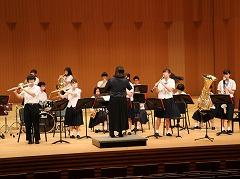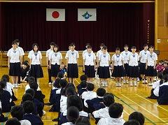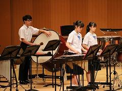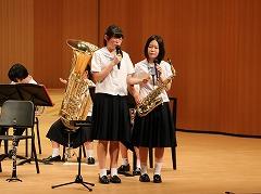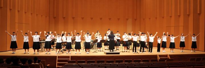 河北郡市6中学校による「河北郡市吹奏楽交歓会」に吹奏楽部が出演しました。この交歓会は、吹奏楽部生徒間の親睦を図ることや、今月中旬から始まる夏のコンクールに向けて、コンクール会場と同じホールで演奏する練習の場になっています。今日はコンクールで演奏する「ふじの山」「竜の舞」を含めた4曲を披露しました。また、最後の演奏曲「全力少年」では、1年生もステージに上がり、ダンスで盛り上げました。他校の中学生や保護者の方々が観覧する中での演奏は、緊張したと思いますが、最後まで堂々と演奏することができました。