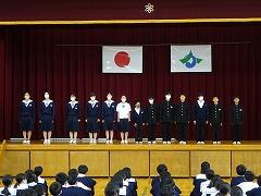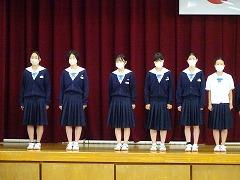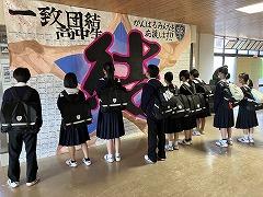 本校の陸上競技部の練習からは、身体、技術だけでなく、心も鍛えている部活動だと伝わります。キャプテンの桶谷 柚菜 さん(3の1)が「お互い助け合い練習を頑張ってきました。1人でも多くの県体出場権をめざす」と力強く決意を述べました。