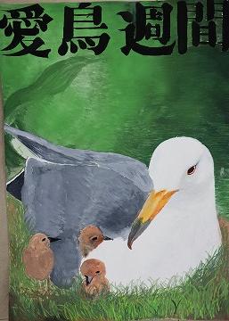 石川県生活環境部が募集した「愛鳥週間ポスターコンクール」に出品する創作部15名の生徒作品です。4月からの部活動の時間で仕上げたそうです。ネット上の画像や書籍を参考にして、野鳥の特徴、羽根の濃淡や質感など、隅々まで観察して丁寧に描かれています。ヒナと一緒に描かれ親子の優しさが伝わってくる作品もあります。作品に描いた野鳥の種類も載せました。作品を書いたり、見たりする機会を通して、野鳥に興味を持つことも面白いと思います。なお、審査は今月下旬に行われ、優秀作品に選出されたものは石川県の応募作品として、全国コンクールに出品されます。