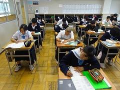 5月31日(金)に「1学期中間テスト」が行われます。今日は、全学年でテスト範囲発表とテスト計画を作成しました。写真は1年生が、テスト範囲を見ながら計画を立てている様子です。試験範囲をテストまでの日数で割って1日当たりの学習量を考えたり、学校がある日と、休日の時間の使い方を考えたりしていました。中学校に入学して、新しい学年に進級して初めての定期テストです。大事にしてください。