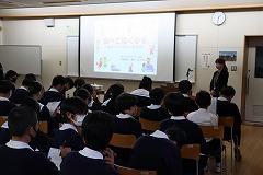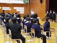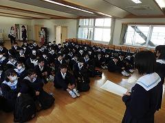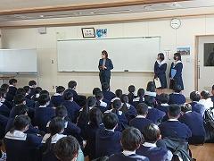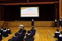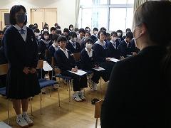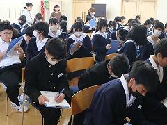 1年生の廊下の掲示です。(写真上段)1年生85名全員が参加した校外学習の記念写真と、アンケート結果、感想が貼ってありました。アンケートでは、校外学習の2つの目的(①親睦を深めること、②科学的知見を深めること)を達成した生徒が98%と書かれていました。今後の1年生の姿が楽しみです。