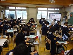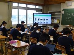 写真下段は、3年生のようすです。3年生は修学旅行で「学んだこと」「今後にどう生かされるのか」をスライドにまとめていました。午後からは、クラス内で発表会をする予定です。