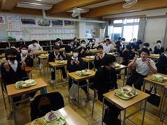 今年も、株式会社「米心石川」様より、受験生へ応援おにぎりが配られました。今年のおにぎりはは「能登豚肉みそ」と「ウィンナーカレー」の2つです。それぞれ「豚豚(とんとん)拍子」「Winner」とゲン担ぎした具材のおにぎりです。市販のものと違い、シールのデザインも「お守りの形」になっていました。この受験生を応援するおにぎりは、金沢錦丘高校と能登高校の生徒が共同開発したそうです。いつもの美味しい給食が、さらに、温かい気持にさせてくれました。いよいよ残すのは、公立高校入試だけとなりました。いろいろな方々の応援があることを知って、試験に臨んでください。