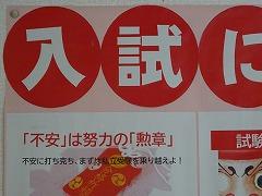 下の写真は3年生の入試直前テストのようすです。さすが3年生、緊張感がものすごく教室に入れず、今日は廊下から写真を撮りました。3年生教室横に「入試に向けて」「ケアレスミス撲滅強化月間」の掲示がありました。「『不安』は努力の『勲章』」という掲示がありました。「不安」を感じるのは試験に向けて努力しているからこそですね。昨日から公立高校の入学願書の受付も始まりました。残された時間を大切にしてください。