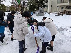 2月21日(金) 創作部による雪像が玄関前に現れました