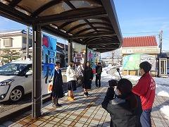 1年生が美術科の授業で作成した「のぼり旗」が、本物の「のぼり旗」となって、今日の高松駅をスタートに高松地区を巡回します。1年生はFT(総合的な学習)の時間に、かほく市について、いろいろな角度から学んできました。その学びから「かほく市」「高松」について伝えたいことを、文字の書体、背景、色彩などで表現しました。