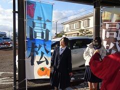 高松駅のあとは、産業文化センター、南町コミュニティ広場(高松IC側)、市役所の順に「のぼり旗」が巡回します。ぜひ、生徒の作品をご覧ください。