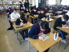 1、2年生は、今年度最後の定期テスト「3学期期末テスト」が実施されました。今年度最後のテストです。テストを通して、確実に身についていること、分からなかったことを明らかにすることが大切です。現在の学年での学習を修めてください。