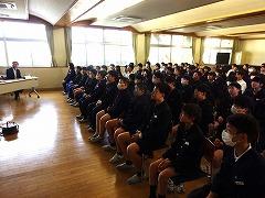 3月の全校集会がありました。今年度、最後の全校集会になります。空調設備工事が完了し、今月からは毎月の集会は体育館で行えることになりました。校歌も全員で歌うと力強く感じます。