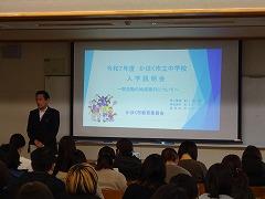 大雪のため延期した6年生児童が対象の授業体験、入学説明会が行われました。6年生が中学校校舎を見学した後、数学、美術、英語の3科目に分かれて授業を体験し、わずかな時間でしたが中学校の雰囲気を感じてくれたように思います。その後は、学習、生活担当の先生より「中学校入学前に確実に身につけてほしいこと」のお話がありました。3週間延期したため本当に直前の説明会となりましたが、中学校に入学する日まで小学校の学習を力いっぱい頑張るという中学生になるための準備をしてください。4月に高松中学校の制服を着た皆さんが登校してくることを楽しみに待っています。