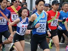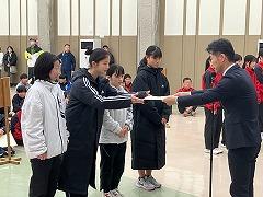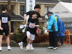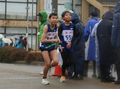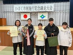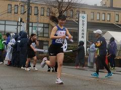 かほく市役所をスタート・ゴールとする1区間3kmを4人でつなぐ第21回かほく市制施行記念継走大会が行われました。本校からは男女陸上部、男女バドミントン部から合わせて10チームが出場しました。第3走者、第4走者が走る頃は雨も強くなりましたが、すべてのチームがしっかりと襷をつないで走り切りました。特に、女子陸上部は昨年に続く3連覇を、全員が1年生で構成した男子陸上部は4位入賞しました。また、花野 令奈(1の3)さんが第1位、真田晴綺(2の3)さんが第3位に入賞し、個人賞を受賞しました。春からの大会も楽しみです。さらに、本校からは、下池先生と能口先生がランナーとして出場しました。お疲れ様でした。