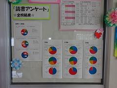 学校図書館の掲示物を紹介します。まず、目につくのが本を借りた冊数分だけ桜の花を咲かせる「3年生への感謝の桜」です。14日の卒業式に向けて、さらに花が咲くでしょう。図書館内には「ひなまつり」の由来が書かれた掲示や、入試にも出題された「恋愛小説」を集めたコーナーがありあます。また図書館へ上がる階段には、1・2年生が冬休みに作成した「本との出会い」が飾られています。学校図書館には、本を読みたくなる仕掛けがいっぱいあります。ちょうど、読書についてのアンケート結果もありました。本校の生徒の9割以上が「本を読むことは大切」と答えています。学校図書館には、本を読み始めるきっかけがある場所になっています。