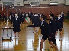 11月に続き、2回目の3年生球技大会(バレーボール)が行われました。大会は各クラス男子3チーム、女子2チームを編成し、予選リーグ、決勝リーグによって決定する順位で競いました。男子の部優勝は1組、女子の部優勝は2組、男女総合優勝は1組でした。大会後には各クラス男女1名の生徒代表チームと教員チームのエキシビションマッチも行われました。卒業まで1カ月を切った3年生、さらに学年としてのまとまりを深めたように思います。