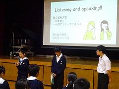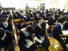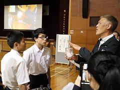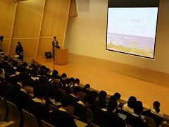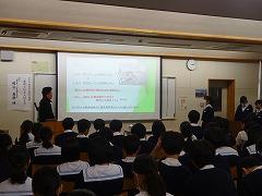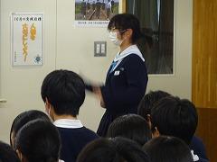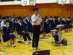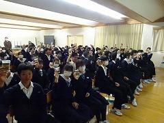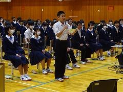坂下 氏 は、厳しい環境の中でいろいろな人が基地を支え、自分のことだけでなく皆で協力して活動にあたった南極での経験から「共同の目標」を持つことで強いチームワークが生まれることや、考えることだけの人が多いが行動に移すことが大切で、例え仕事は不器用でも、そのように考えている人を企業は求めているとお話されました。講演の最後には、「幸せになるには、チャレンジ!!、簡単にはあきらめない、まずはやってみる、動いたことが学びになる」と中学生に向けてメッセージをくださいました。