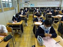 3年生は、今年度第2回目の河北郡市統一テストを実施ました。2回目ということで、テストの要領であったり、日頃の授業、家庭学習の仕方等がつかめてきた人も多くなってきたと思います。今月21日(木)には、進路説明会が開催されます。また、進路説明会を受けて、進路希望調査も行われます。ぜひ、ご家庭でも希望通りの春が迎えられるように、進路選択についてお子様とお話しをする時間を持っていただけたら嬉しいです。なお、統一テストは、12月、1月にも実施されます。