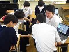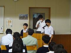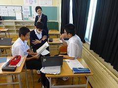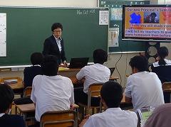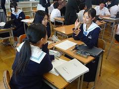 「校長先生の『宿題をなくす』という提案に賛成か?反対か?」という課題についての授業でした。最初は、資料をもとに根拠と理由を考え、自分の意見を持ちました。その後は、聞き手に分かりやすく伝えるために、説得力のある表現方法を工夫するために意見交流を行いました。生徒が、英語で伝えたい、自分の思いを分かってほしいという気持ちが教室内にあふれていました。今日の授業を受けて、明日の授業では、それぞれが発表を行う予定です。明日に向けて、説得力ある表現を考えたくなる授業でした。