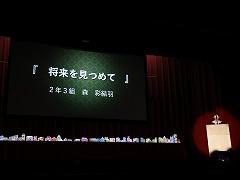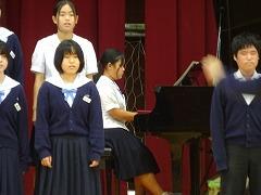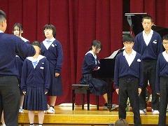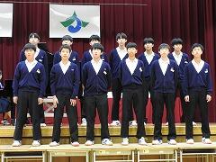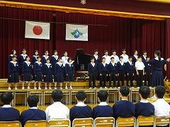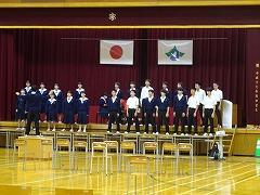 合唱コンクールの最優秀賞は、1年3組、2年2組、3年2組が受賞しました。3年2組は、8日(金)に開催される河北郡市中学校音楽会に参加します。